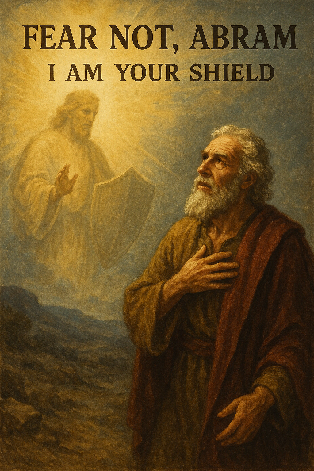 While Abraham was in this state, God appeared to Abraham and said to him in Genesis 15:1, “Fear not, Abram, I am your shield; your reward shall be very great.” This phrase, “I’m your shield,” means that God will protect Abraham in his journeys through life. He will be present with Abraham and will never desert him, even in times of trouble and distress. This image is repeated for us in the Psalms and elsewhere, stating that God is a shield for his people. He will secure us from all evils, always coming between us and harm. If this is the case, and it is, it should silence all perplexing, tormenting fears Abraham could have. It should silence our fears also.